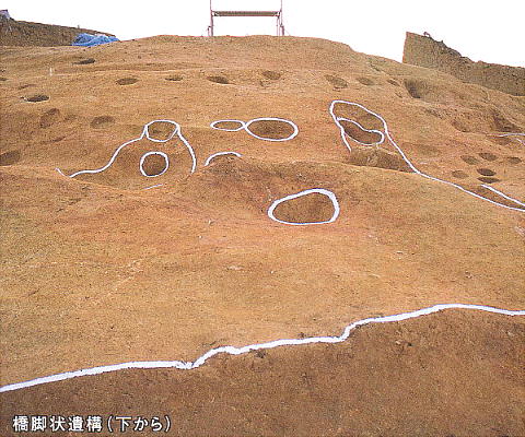 考えられる柱穴があった。建物下の平地にも柵列と思われる柱穴があった。これらの柱穴からは、僅かに須恵器・土師