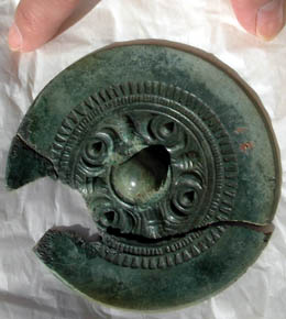 古墳時代中期の方墳の周溝から見つかった珍しい文様の銅鏡