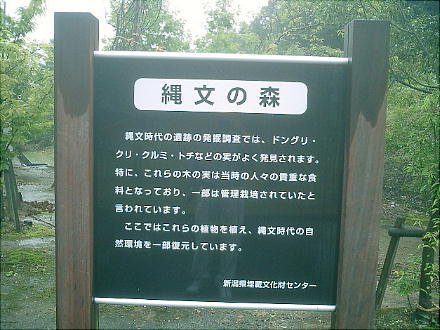 センターの前には広場があって、そこに縄文時代に生えていたと思われる植物を植えて「縄文の森」を再生してあった。