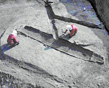 丸木船出土状況(青田遺跡)