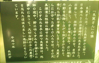 良寛さんは長岡の人だったんだ。田中角栄も確かこの近くだったよなぁ。