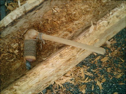 のようだった。すすめられて私も削ってみた。驚くことに、けっこう削れるものである。石斧も、ぜんぜん刃こぼれもせ