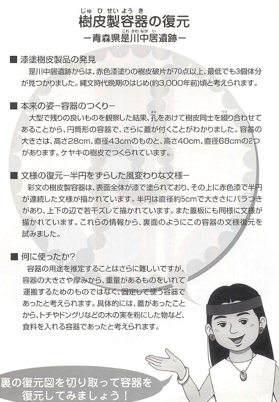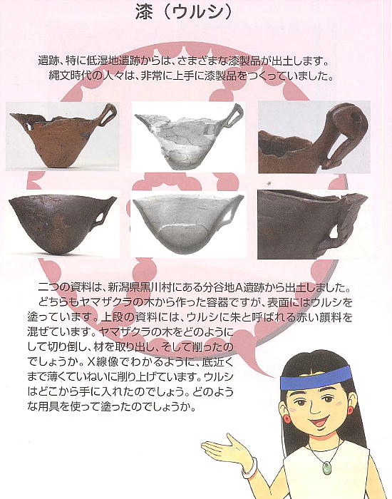 術が推定された。他に丸木舟や擢・丸木弓などがある。編物類には籠類・笠状編物・簾状編物がある。漆製品には赤漆塗り