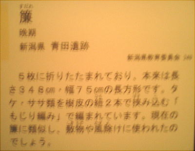 も編籠やアシ製簾などの編物技術を含め、木工技術・漆工芸技術など生活文化レベルの異様な高さが窺い知れる。