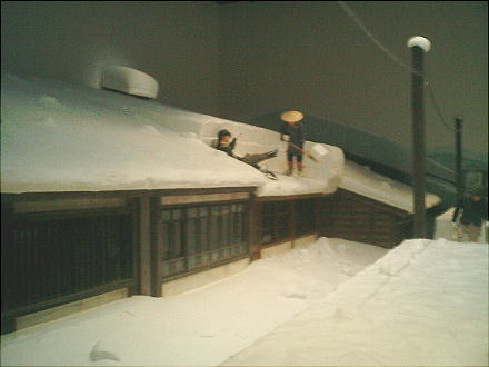 2階から風景を見ると、高田の町の二つの雁木の形式と、積もった雪の量が実感できる。西日本に生まれ育った私として