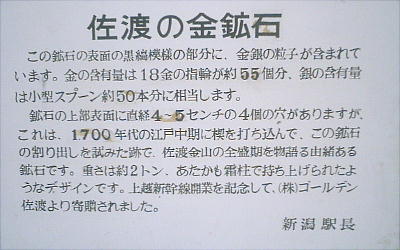 新潟駅構内に、佐渡金山の金鉱石がデーンと置いてあった。さすがは日本の金脈県。(ん?田中角栄を思い出したりして。)