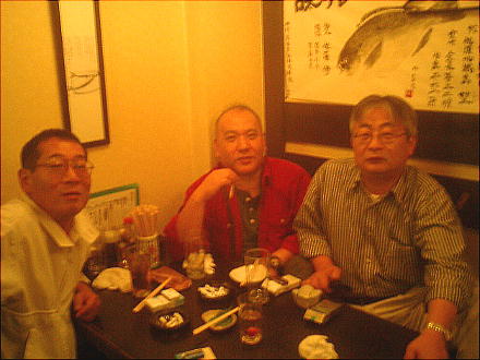 渡辺君(左)と石崎君。石崎君とはもう10数年ぶりの再開だ。上右をクリックすると、この後行ったスナックの模様が。