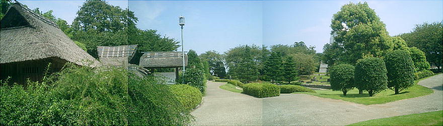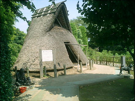 公園内には、縄文・弥生・古墳時代の住居が復元してあるが、遺跡によっては見事な茅葺になっているところもあってご愛嬌である。