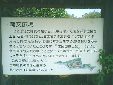 うひがし)遺跡(協和町)、椎塚(しいつか)貝塚(江戸崎町)、広畑(ひろはた)貝塚(桜川村) などなど、このあたりの縄文遺跡