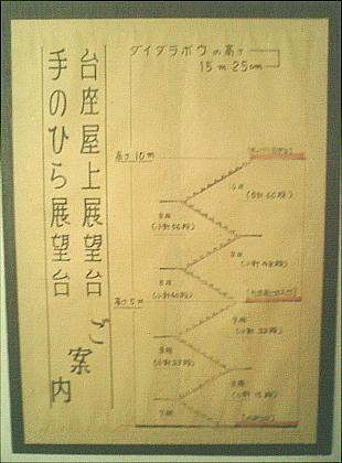 上はダイダラボウの手のひら。階段を登っていくと狭いドアがあり、そこからダイダラボウの手のひら展望台へ出る。