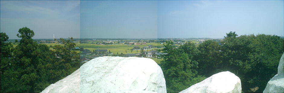いきなりダイダラボウのデカイ顔が頭の上にあって、目の前は常盤平野(?)のすばらしい眺望が開けている。