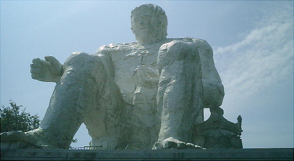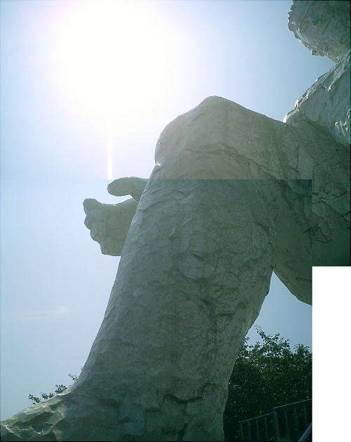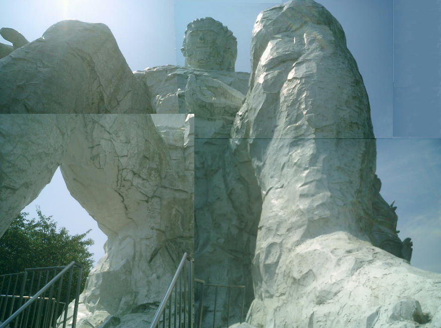 ダイダラボウの足跡が池になっている。背中も見えるがデカイ。長崎の「平和の像」を思い出す。