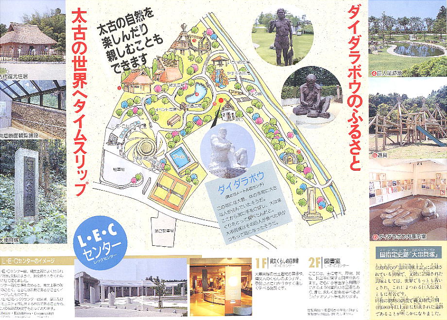 現在、貝塚周辺は「大串貝塚ふれあい公園」として整備され、高さ15mの巨人像「ダイダラボウ」、貝塚の様子を見るこ
