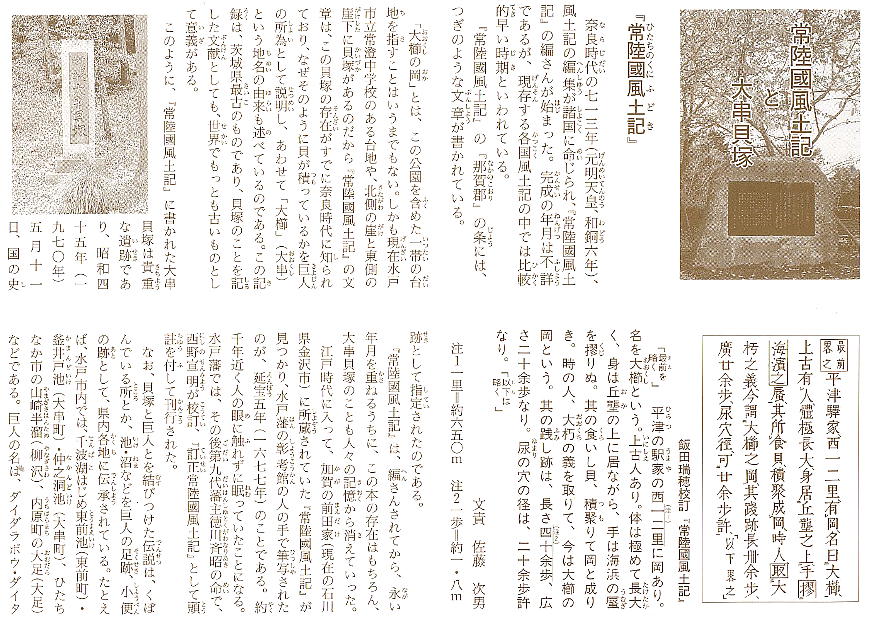 り、文献に記録された貝塚としては世界で最も古い。また同じく常陸国風土記には、これにまつわる「ダイダラボウ」とい