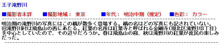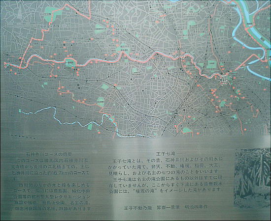 隅田川に合流する。江戸時代には渓谷の美しさは素晴らしく、いくつかの滝が流れ落ち、川の水は綺麗でその水で点て