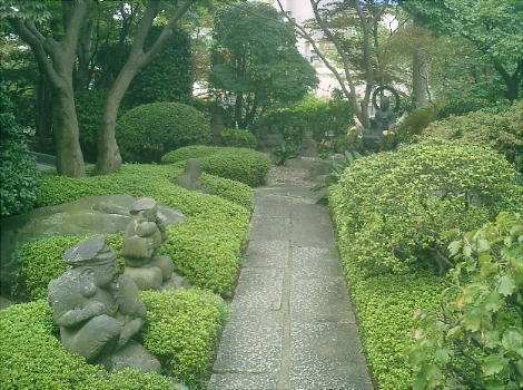 像が祀られていた)。本堂の右には向かって左から,恵比寿天,大黒天,福禄寿の石像が,その向い側には左より