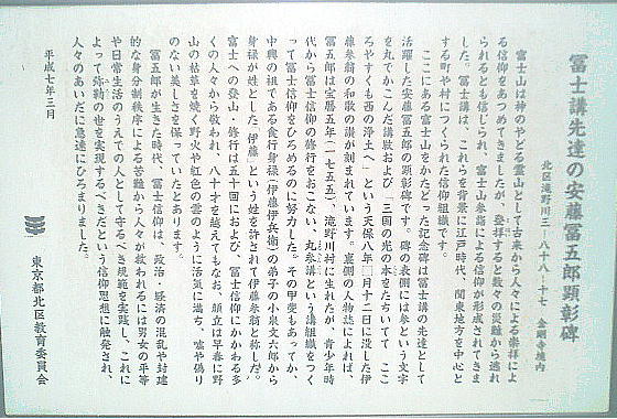 滝野川村に生れたが,青少年時代から冨士信仰の修行をおこない、丸参講(まるさんこう)という講組織をつくって