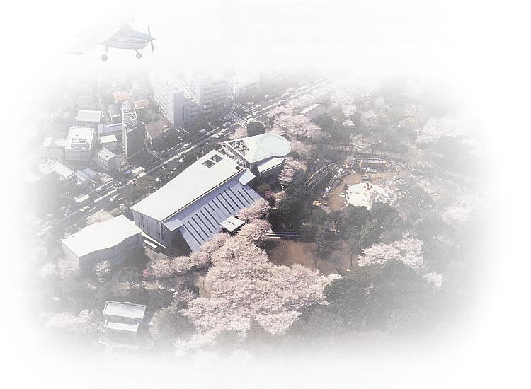 上は、空から見た飛鳥山公園の3つの博物館の上。桜が満開だ。