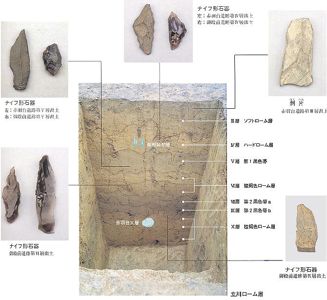器(はじき)等が発見され、先土器時代から古墳時代・歴史時代にわたる古代人の生活の場であった事がうかが