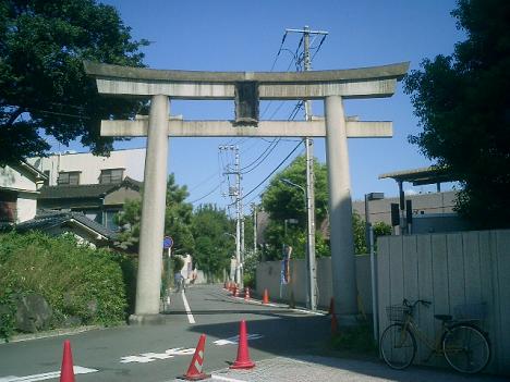 がある。上の写真で、警察署の前、説明板との間に小道があり、ここに七社神社への大鳥居が建っている。