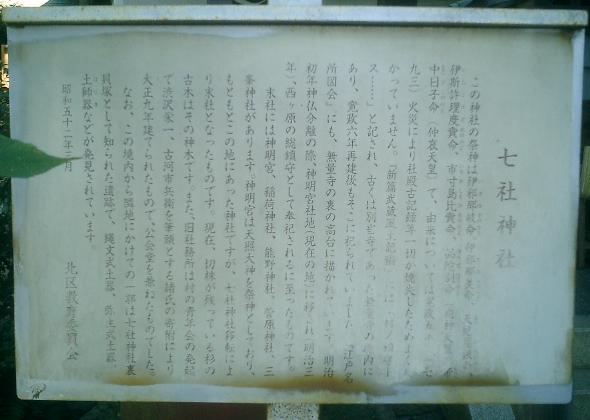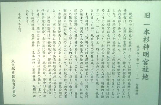 「新編武蔵風土記稿」には、「西ヶ原村七所明神社、村の鎮守とす。紀伊国高野山四社明神をおうつし祀り、伊