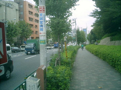 走っているが、ここに日光御成道(岩槻街道)の、日本橋から数えて二里目の一里塚が中央分離帯として残され