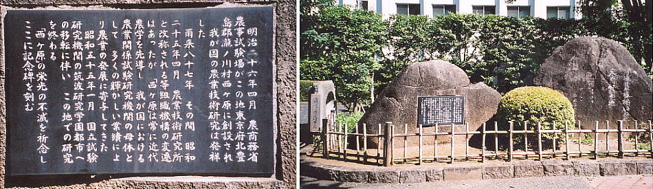 明治通り沿いにまた飛鳥山へ戻る。滝野川公園。公園奥には明治時代にあった「農商務省農事試験場」の碑があり、