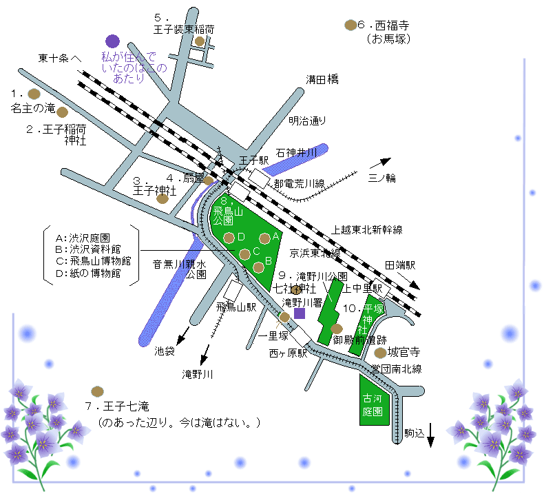 の都合上、ここでは以下の番号順に掲載した。飛鳥山の3つの博物館のコーナーでは、各博物館からの資料をここに転載し