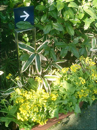 書斎の前には、土管などを利用して菜の花やツユクサを植え眺めていた。