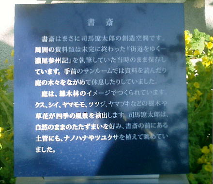 ような様相だ。司馬遼太郎は自然のままのたたずまいを好み、夏には生い茂る雑草もあまり抜かず、秋の落ち葉も落
