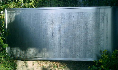 庭の片隅には、記念館設立の協力者(募金者)たちの名前がズラリと並んでいた。知り合いがいないか探したが、あ