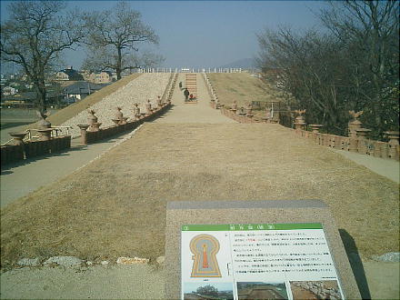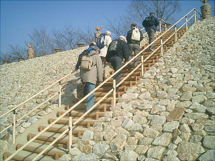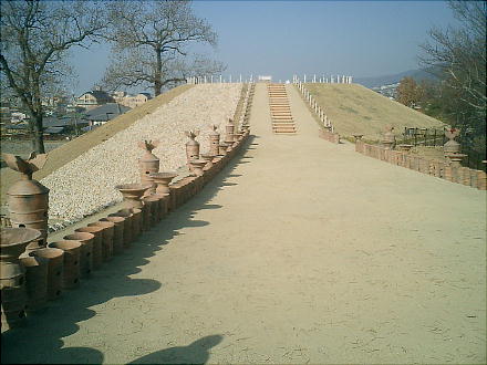 この地域一体を治めていた王の墓と考えられている。これまでの発掘調査によって、古墳は3段に土が盛られ、
