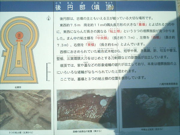 埋葬施設: 後円部…粘土槨3基 前方部…木棺1基