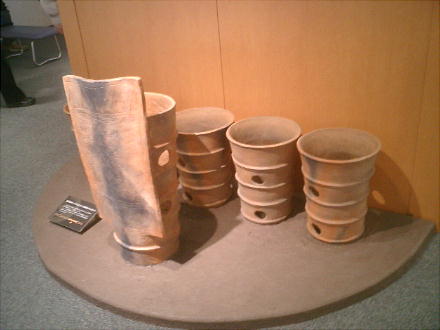 古墳に並べられた埴輪の内、一番多いのがこの円筒埴輪である。一体何を模しているのか判然としないが、多く