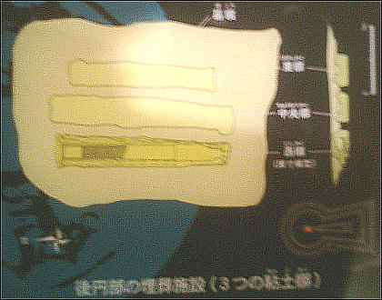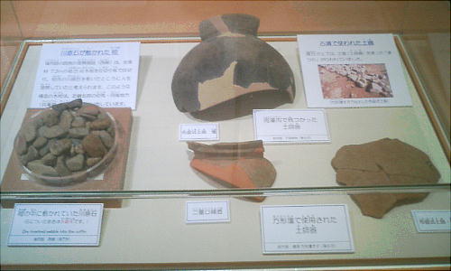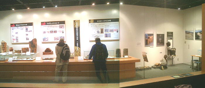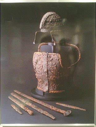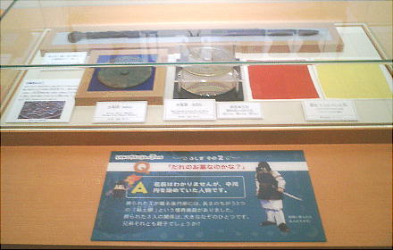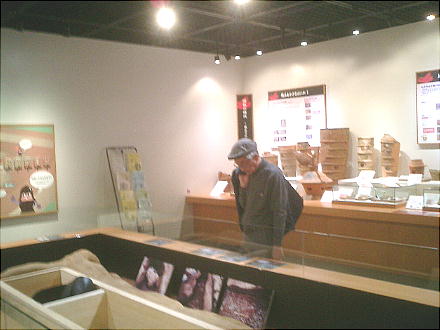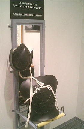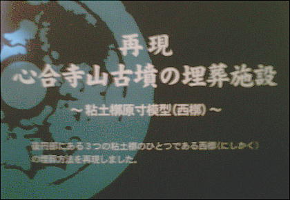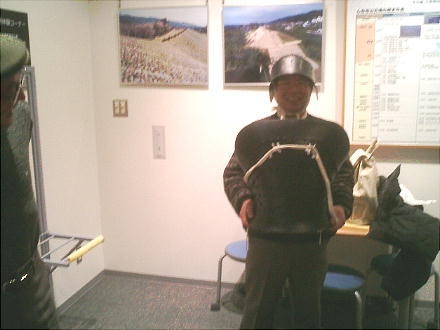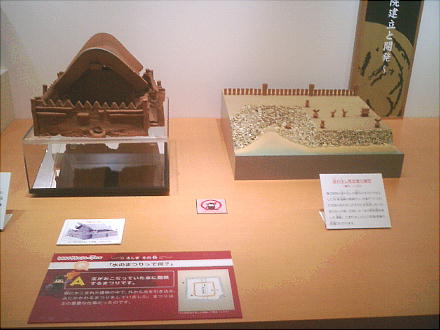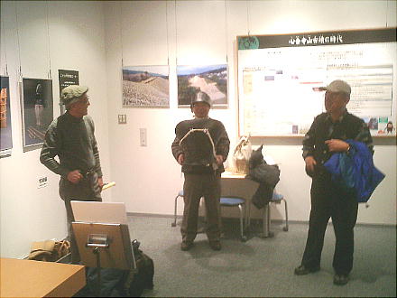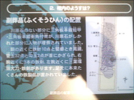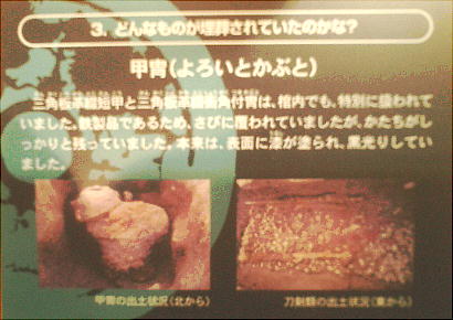 出土した甲冑の模型を西本さんが着ているが、逆光でうまく写っていない。西本さんごめんね。