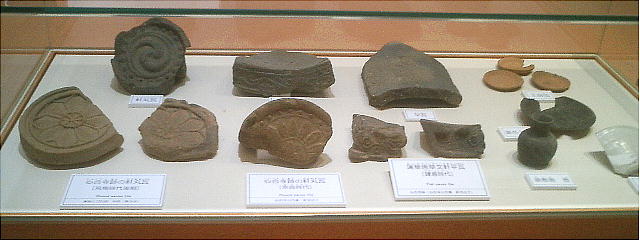 と)の屋根は瓦で葺かれていた。寺の場所は確定していないが、多くの瓦が出土している。なかでも軒丸瓦(の
