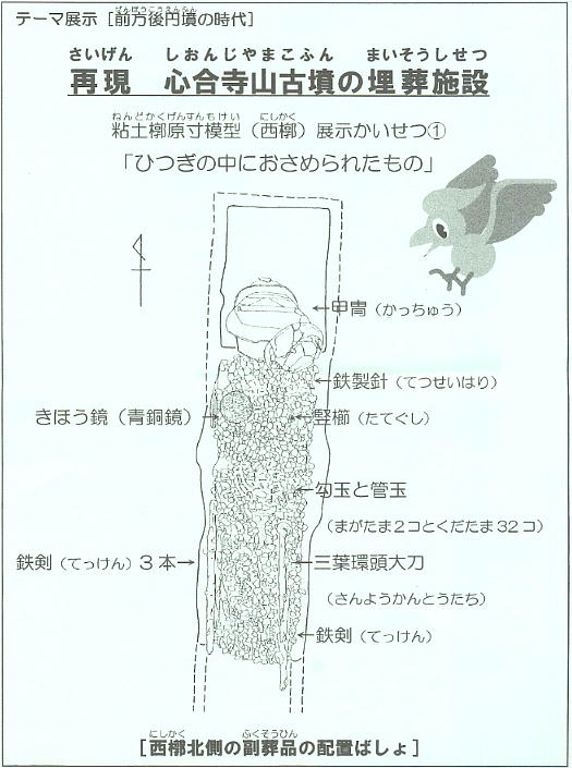 きほう鏡は中国で作られた銅鏡で、向かい合う鳳凰が描かれている。日本での出土例は少ない。後円部の埋葬施