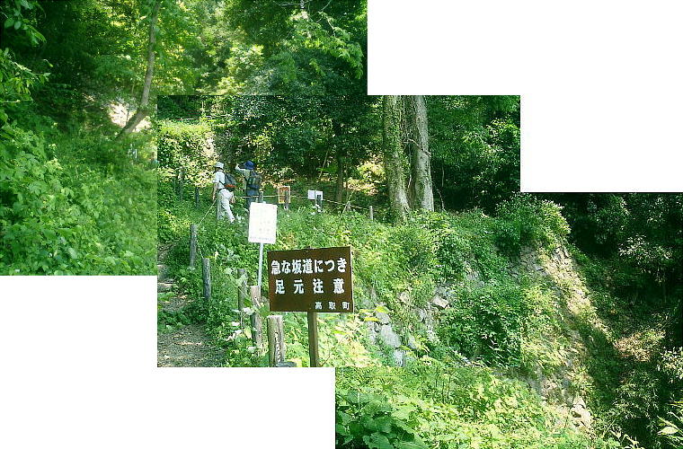 山道を左へ折れて、国見櫓への道がある。2,3年前にボランテイアの皆さんでこういう形にしたのだそうだ。