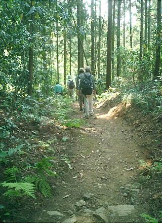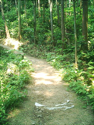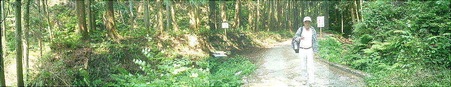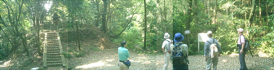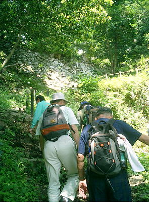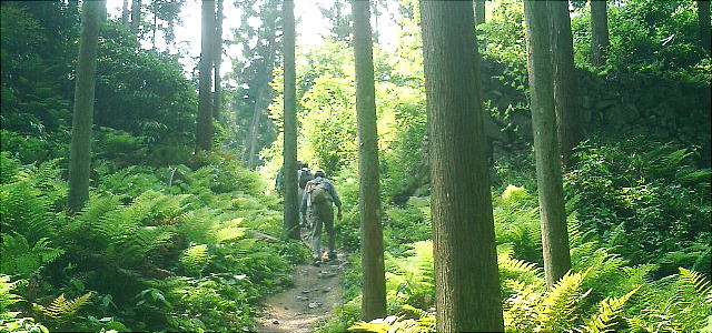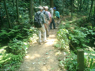 河内さんが歩いているあたりに黒門があった。本来はここから高取城へ登ったのだ。しかし今降りてきた道を登るとはなぁ!