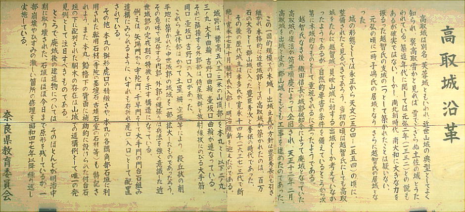 明治維新の後、明治政府は各地にある城郭のうち、58城を残し、144城の廃毀を決めた。大和の国の郡山、高取の2城も