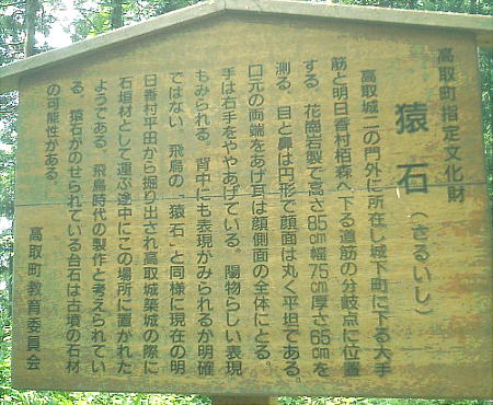 二ノ門外、城下町に下る大手筋と岡口門の分岐点にあり、制作は、飛鳥時代の斉明朝(7世紀)と推測される。高取城