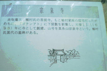 (1698)寺として創建。山号を真各山宗泉寺という。植村氏累代の墓碑がある。
