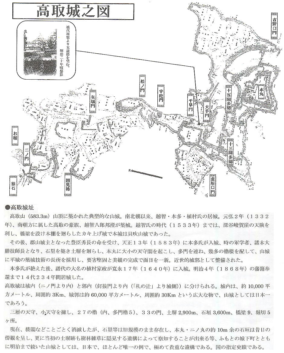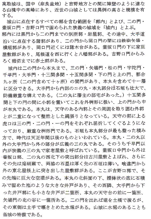 最後の一戦を決すべき拠点として重視されていたのである。1640年(寛永17年)幕府大番頭 植村家政が高取藩主となり、