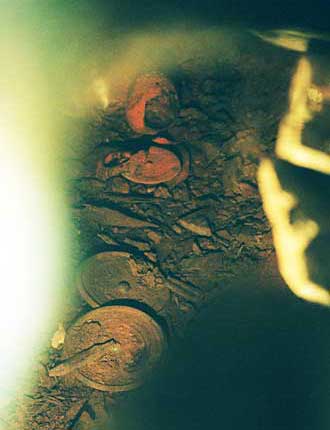 部には木製の棺のなごりと完全な副葬品は盗掘もされず手付かずの状態であった。特に5面の銅鏡はほぼ完全な形で発