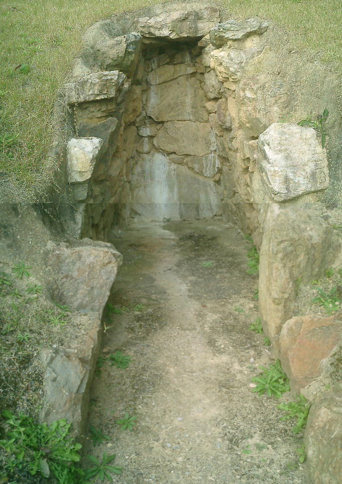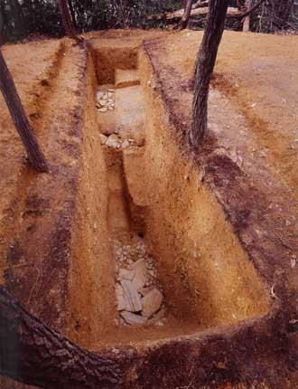 発掘調査がなされた。墳墓そのものは山の斜面を利用した墳丘をもっていた。墳丘は大きく崩れ落ちていたが、墓坑内