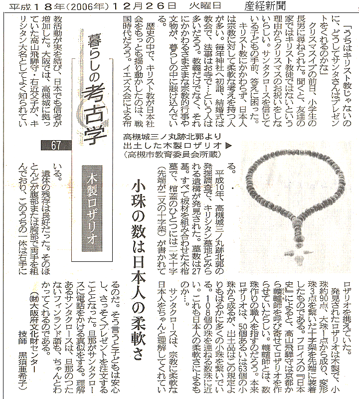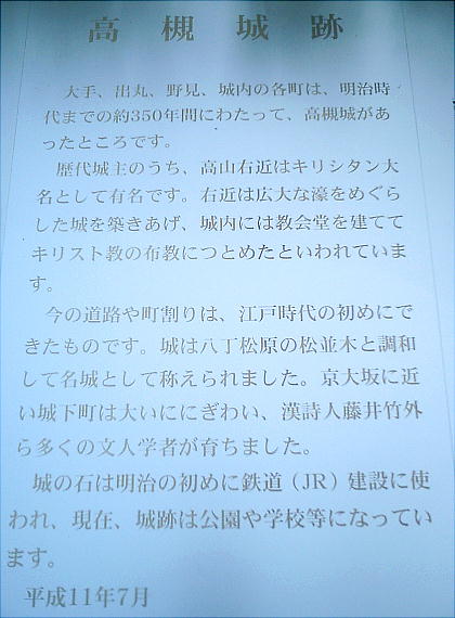 槻城下にはキリスト教信者が3〜4万いたともいわれ 、キリスト教の祭典の時には大変賑わったと、高槻を訪れた