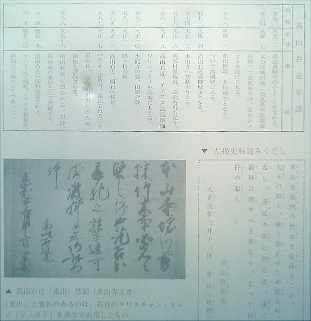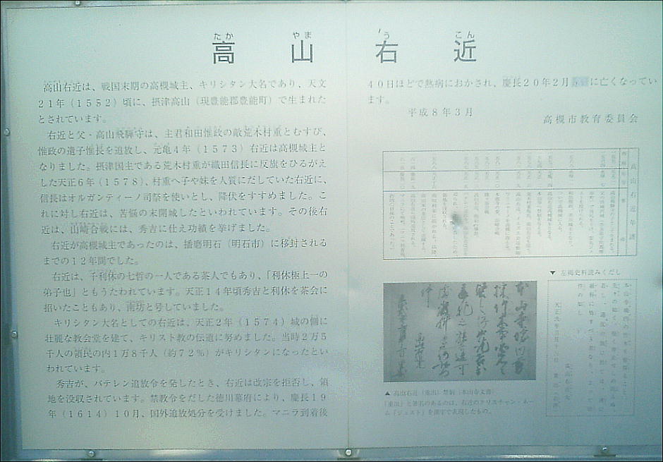 高槻は、キリシタン大名で有名な高山右近ゆかりの地。高槻城主であった右近は、徳川家康のキリシタン禁制が配布