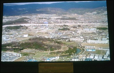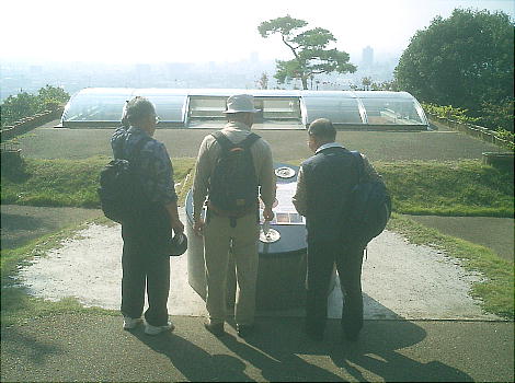 一望できる。南は泉州、西は淡路島,東は京都宇治、木津の方面までが見渡せる場所である。遠くの木津川、目前の淀