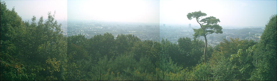 川、南側遠くの大阪湾、が大きなパノラマである。