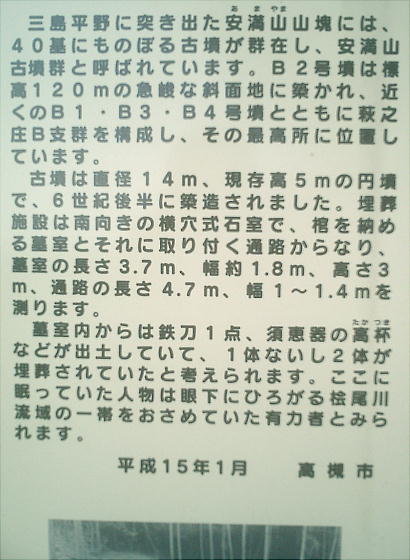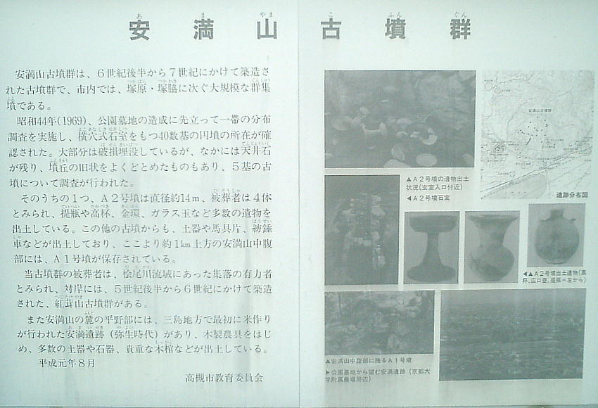 このような周りの状況の中、この安満宮山古墳が発見されたのである。市の公園墓地の造成に伴いたまたま発見された。